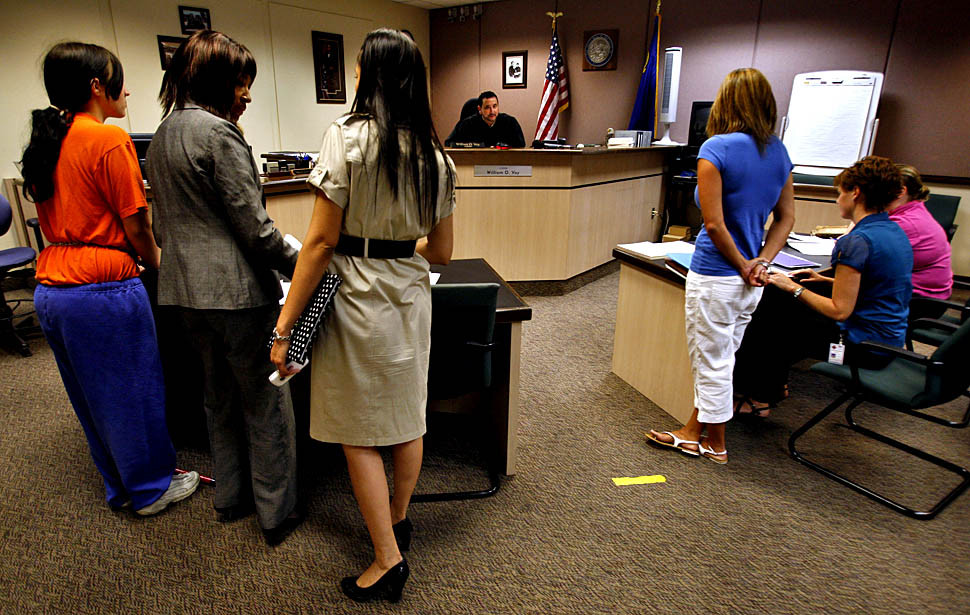 1. Марисела Кинтеро (третья слева) – единственный социальный работник в округе Кларк, имеющий дело с детской и подростковой проституцией. На этом фото она в зале суда перед судьей Уильямом О. Воем в Лас-Вегасе. (Francine Orr / Los Angeles Times)