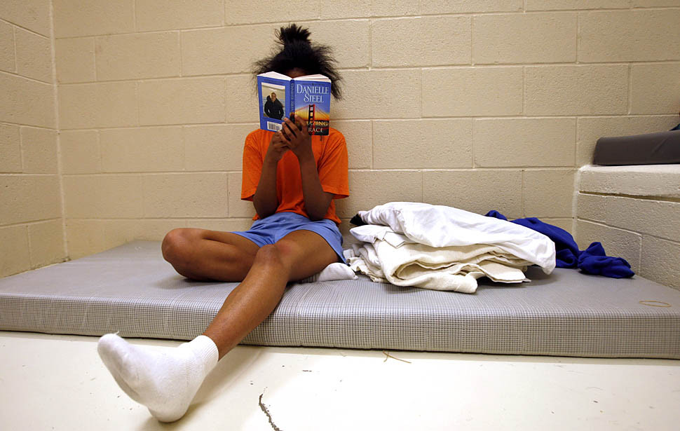 6. 17-летняя девушка читает книгу Даниэллы Стил в камере в центре для задержания обвиняемых. Она работала проституткой. «Главное условие моего сутенера – 500-800$ в день. Если я не зарабатывала столько, я должна была находиться на улице, пока не заработаю». (Francine Orr / Los Angeles Times)