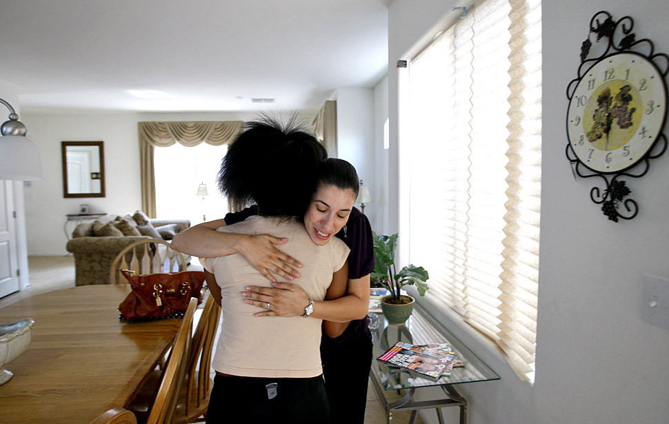 14. Кинтеро обнимает одну из своих подопечных во время визита домой. «В 14-15 лет некоторые девочки еще играют в куклы и ездят на велосипедах. Этих же девочек заставляли продавать свои тела. А ведь они еще дети». (Francine Orr / Los Angeles Times)